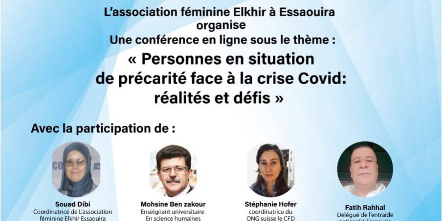 Juin132020Press Catégorie PressPar 13 juin 2020 Auteur Navigation de commentaireOnglet précédent Onglet précédent بلاغ جمعية الخير بخصوص فيروس Covid-19Onglet suivantOnglet suivantSolidarkochbuch der marrokanischen kuchRelated PostsAtelier de formation en intelligence émotionnelle24 janvier 2025العنف الرقمي التشريعات والتحديات24 janvier 2025L’Association Féminine Elkhir: Une mobilisation exemplaire pour Taddart5 juin 2024Droits des femmes dans la province d’Essaouira22 décembre 2023Mission de solidarité pour les familles des villages à Chichaoua7 novembre 2023L’accès des femmes à l’emploi pilier d’égalité24 novembre 2022